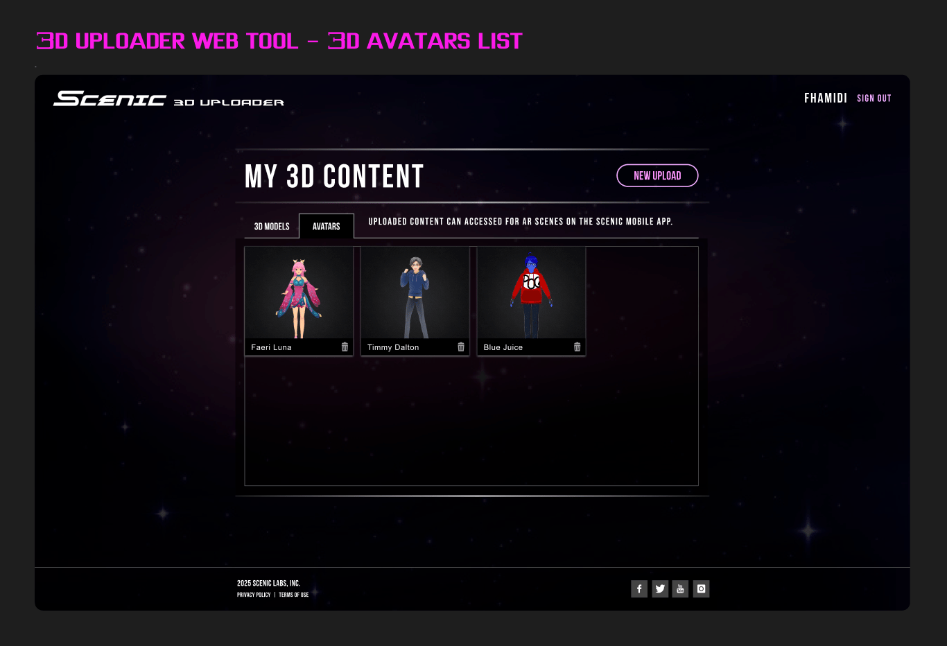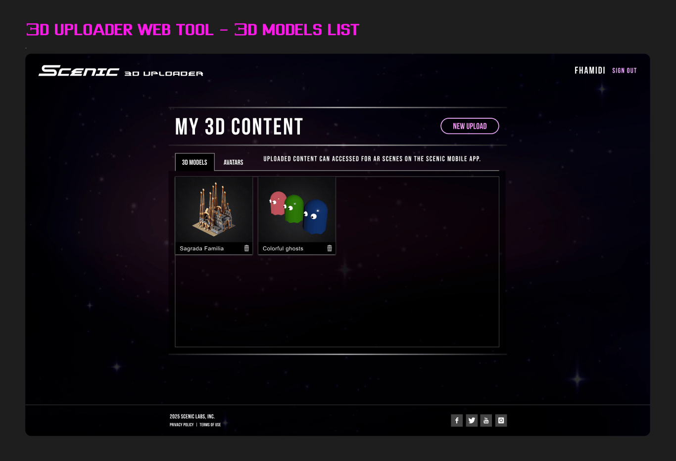 Scenic explored a hybrid model: a platform for immersive 3D performances created on mobile and distributed asynchronously. By allowing users to record spatial avatar performances in AR and publish them as replayable scenes, the platform combined the accessibility of short-form video with the presence of embodied 3D worlds.