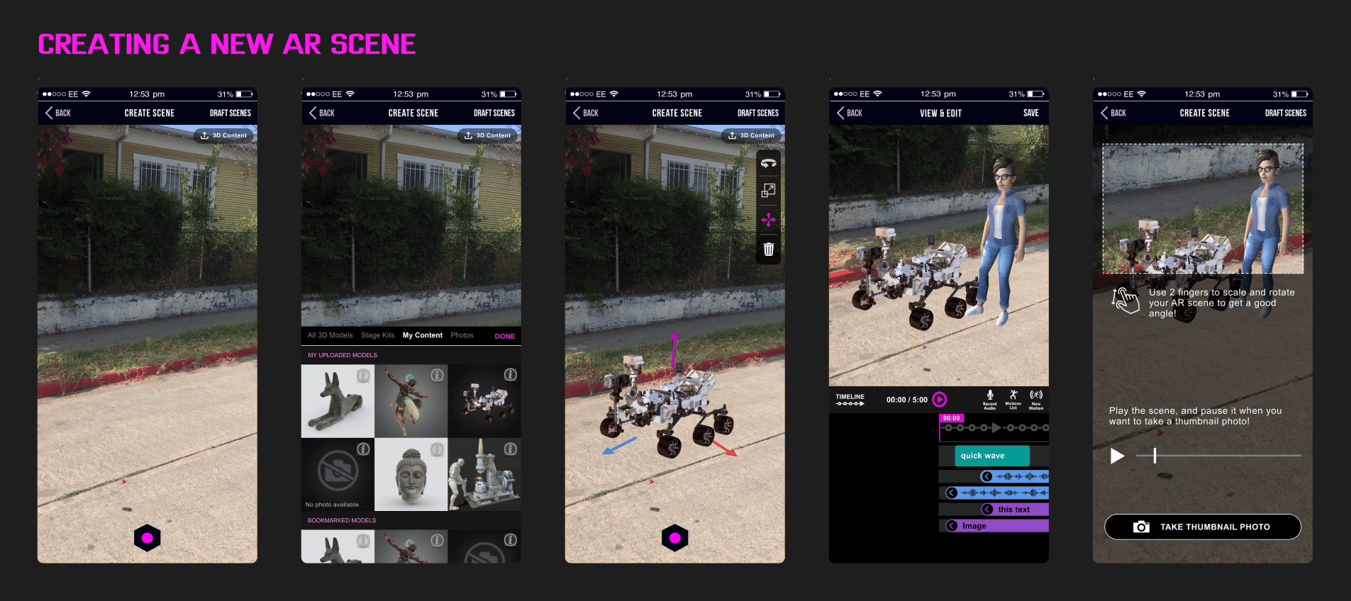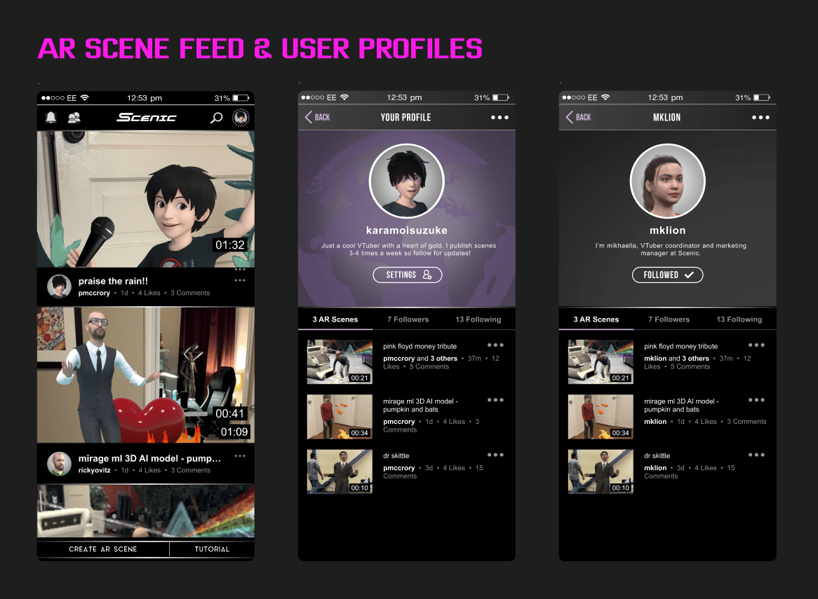 To make Scenic work, it required designs for three connected systems: a social platform for watching and sharing immersive AR scenes, a mobile studio for creating them, and a web-based pipeline for managing 3D assets used in scenes.